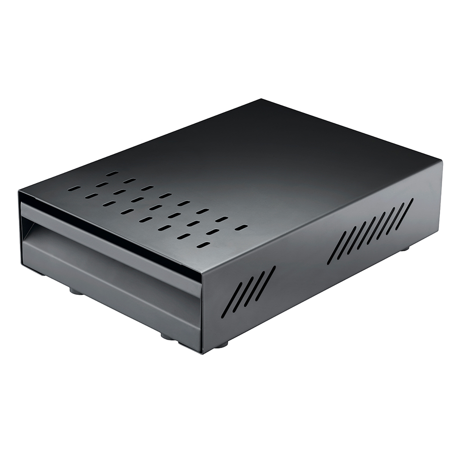 Knockboxen findes i rustfrit stål eller metal med sort overfladebehandling.Der er ventilationskanaler i toppen. På den måde kan kaffen dampe af, når den er slået ud, men du kan også feje kaffegrums mv. ned i skuffen med en børste.