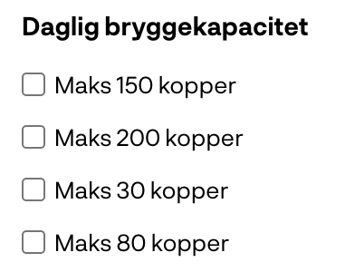 - Behov: Hvilke kaffer skal maskinen kunne brygge?
