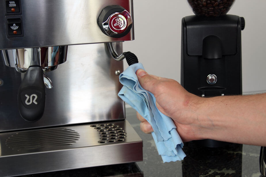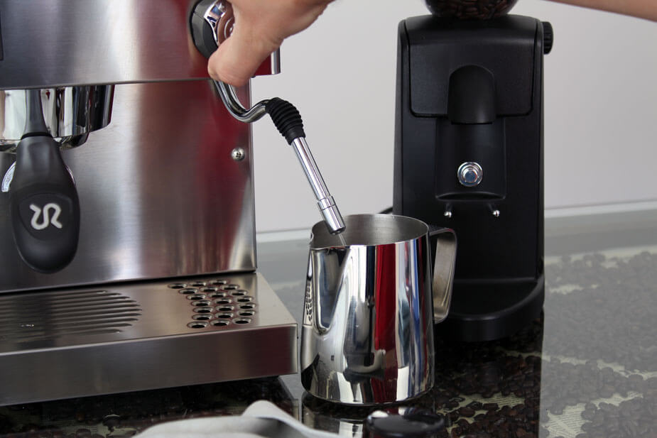 Når du skummer mælk til cappuccino eller latte, kommer der meget hurtigt til sidde mælkerester på ydersiden af steameren, som også let kan brænde fast. Derfor skal du altid tørre damparmen af med en klud umiddelbart efter du har skummet mælk. Du bør også åbne kort for dampen efter du har skummet, for at blæse evt. mælkerester ud af hovedet på steameren