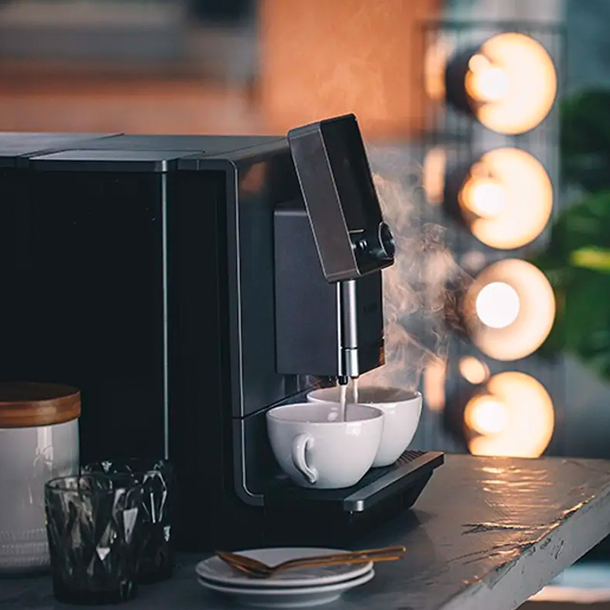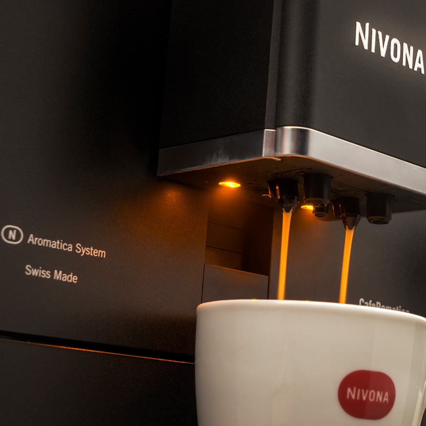 Lydniveauet er sænket betydeligt hos Nivona CafeRomatica 930 sammenlignet med tidligere modeller - dette takket være isolering af kabinettet samt den helt nye, forbedrede kværn med en forbedret rotationsteknik, der støjer mindre under formaling af kaffen.
